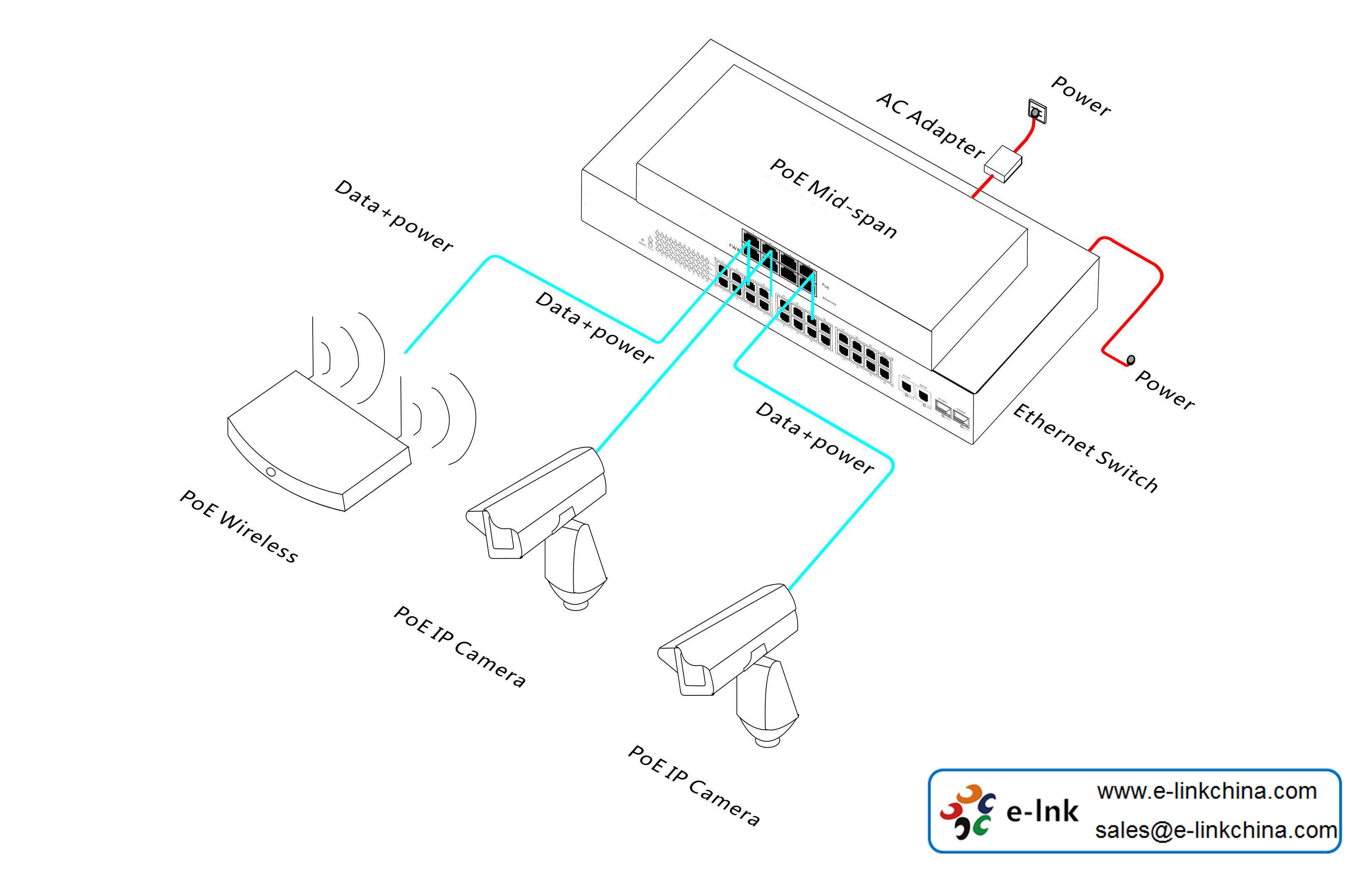 PoE Injector is also called as Power over Ethernet mid-span devices. 4-Port PoE injector, that is PoE power supply module, is the most flexible and the hottest products among the power supply devices. There are 4x RJ45 PoE ports for these 8-Port PoE injectors. This mid-span have 4x2 Standard RJ45 network ports, one group of network ports will use for upper Ethernet switches or other network devices, another group of network ports will support POE power supply output with network data output.